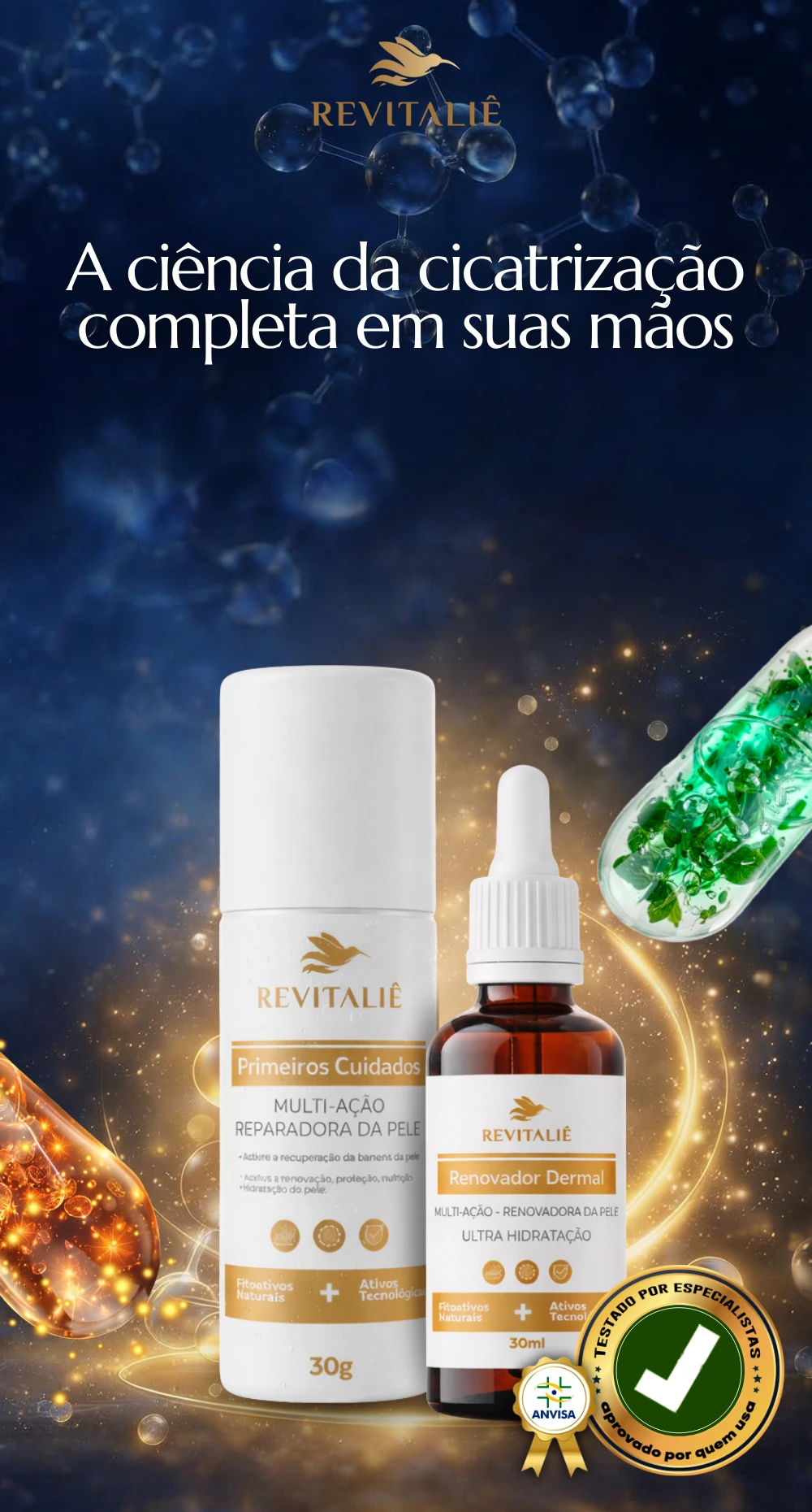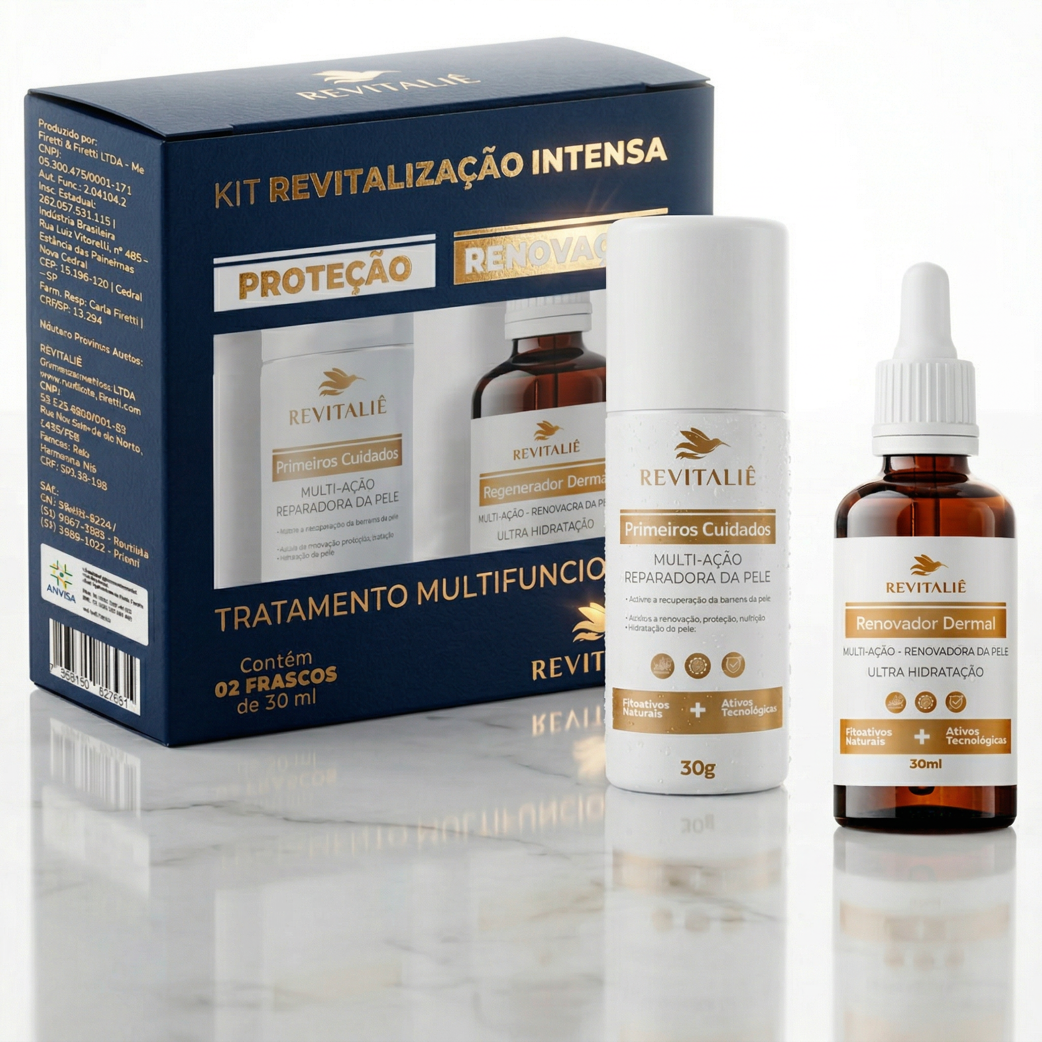 O Kit Revitaliê atua reconstruindo a estrutura da pele em profundidade. Sua fórmula combina ativos naturais com tecnologia clínica, como silício orgânico vetorizado e peptídeos, para devolver elasticidade, firmeza e equilíbrio cutâneo, sem causar irritações.